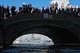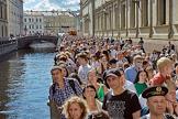 Главный военно-морской парад в честь Дня Военно-морского флота (ВМФ) России в акватории реки Невы. Жанровая фотография. Зрители во время парада.