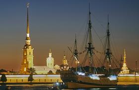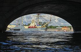 Празднование Дня Военно-Морского Флота (ВМФ). Парусный корабль в акватории реки Невы.