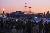 Главный военно-морской парад в честь Дня Военно-морского флота (ВМФ) России в акватории реки Невы. Жанровая фотография. Зрители на набережной во время парада.