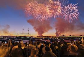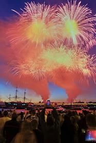 Празднование Дня Военно-Морского Флота (ВМФ). Салют над рекой Невой.