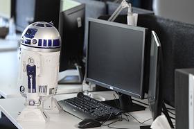 Офис компании "Новые облачные технологии". Жанровая фотография. Игрушка робот на рабочем столе сотрудника.