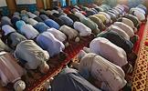 Мусульманский праздник "Курбан-Байрам". Мусульмане во время праздничной молитвы.