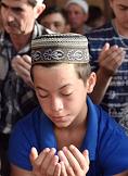 Мусульманский праздник "Курбан-Байрам". Мусульмане во время праздничной молитвы. Жанровая фотография. Мальчик во время молитвы.