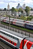 Жанровая фотография. Электропоезда "Иволга" на железнодорожных путях в районе узловой станции "Москва-Товарная-Смоленская".