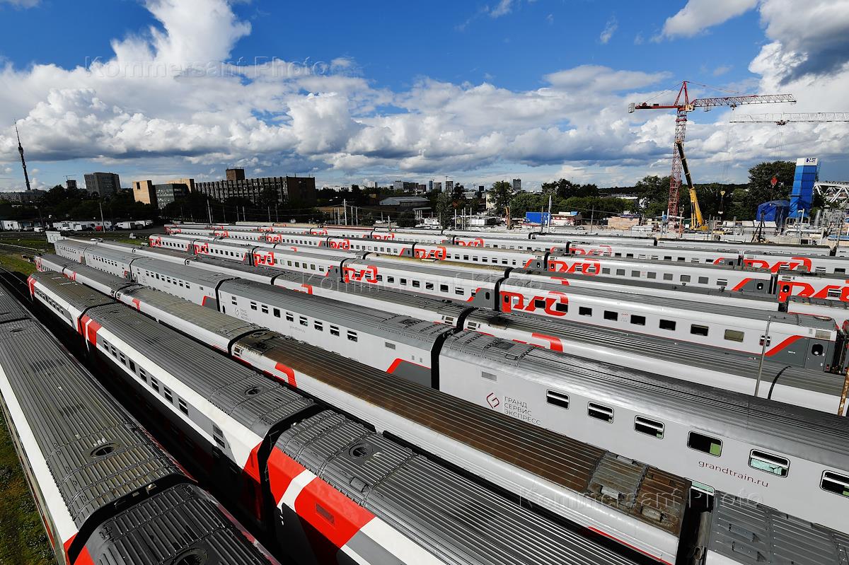 Жанровая фотография. Поезда на запасных путях железнодорожного депо на территории Рижского вокзала.