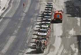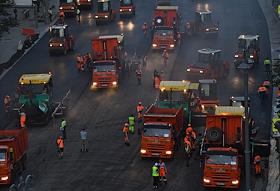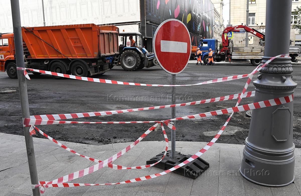 Виды Москвы. Ремонтные работы по замене асфальтового покрытия проезжей части на Тверской улице.