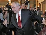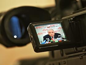 Лидер грузинской оппозиционной партии "Справедливость" Игорь Гиоргадзе (на экране видоискателя) во время пресс-конференции на тему: "Годовщина независимости Грузии в ракурсе современного политического и экономического положения страны". Пресс-конференция прошла в пресс-центре "Аргументы и Факты".
