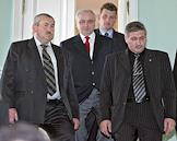 Лидер грузинской оппозиционной партии "Справедливость" Игорь Гиоргадзе (второй слева) после пресс-конференции на тему: "Годовщина независимости Грузии в ракурсе современного политического и экономического положения страны". Пресс-конференция прошла в пресс-центре "Аргументы и Факты".