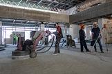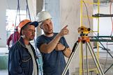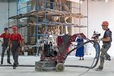 Реконструкция здания Национального культурного центра (НКЦ) "Казань" - переименованного в "Музейный комплекс города Казани". Жанровая фотография. Рабочие на стройплощадке.