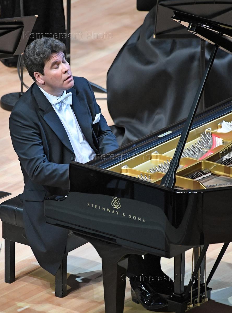 Церемония открытия для публики Концертного зала имени П.И. Чайковского после ограничений, связанных с пандемией коронавирусной инфекции COVID-19. Концерт пианиста Дениса Мацуева и Российского национального молодежного симфонического оркестра (РНМСО) под управлением Валентина Урюпина. Пианист Денис Мацуев во время концерта.