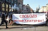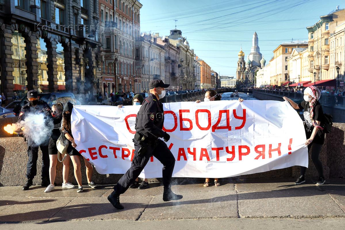 Участники акции на Невском проспекте в защиту сестер Хачатурян, обвиняемых в убийстве своего отца.