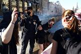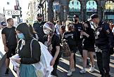 Акция в защиту сестер Хачатурян, обвиняемых в убийстве своего отца, на Невском проспекте. Сотрудники полиции во время задержания участников акции.