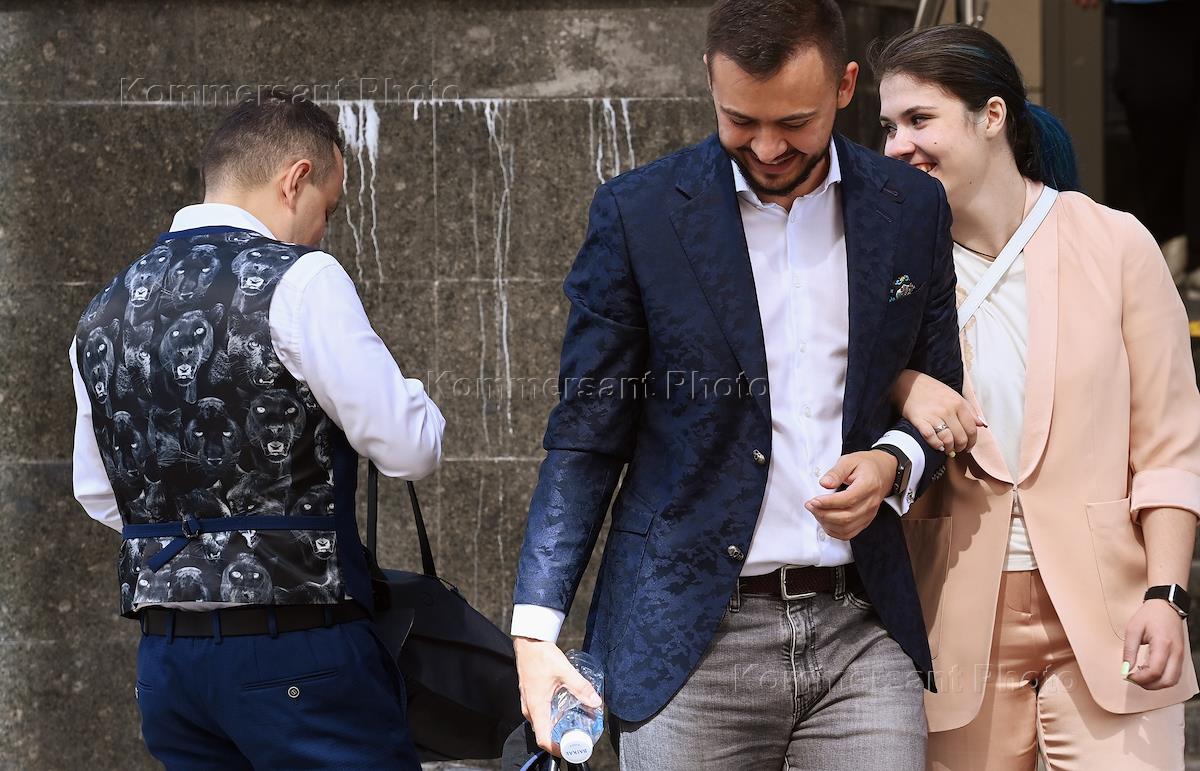 Moscow City Court considers appeal against administrative supervision order over former Moscow State University student Alexandra Ivanova (Varvara Karaulova), convicted of attempting to join the Islamic State Terrorist Organization (banned in the Russian Federation). Former Moscow State University student Alexandra Ivanova (Varvara Karaulova) (right) and her lawyer and groom Oleg Eliseev (left) leave the courthouse after the court hearing.