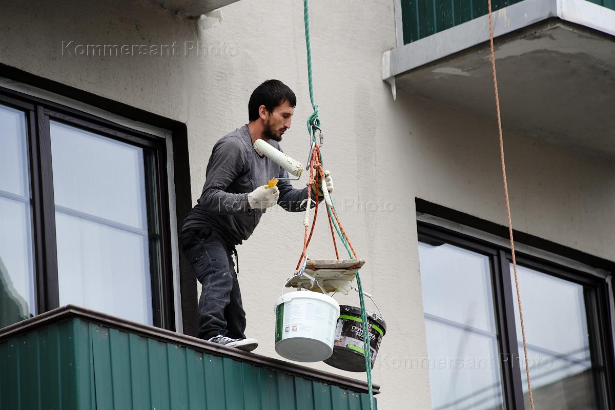 Виды Москвы. Жанровая фотография. Косметический ремонт фасада жилого дома.