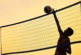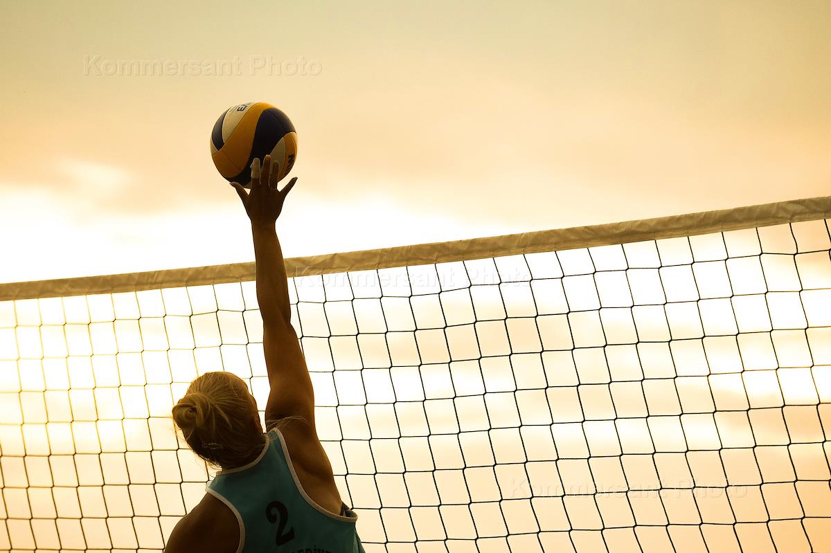 Жанровая фотография. Спортсмен во время тренировки по пляжному волейболу.