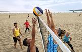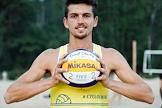 Жанровая фотография. Спортсмен во время тренировки по пляжному волейболу.