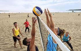 Жанровые фотографии. Тренировка по пляжному волейболу в Новосибирской области.
