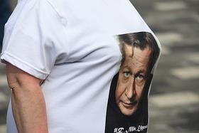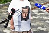 Рассмотрение по существу уголовного дела в отношении актера Михаила Ефремова о ДТП со смертельным исходом с участием актера в Пресненском районном суде. Вечером 8 июня на Садовом кольце Ефремов за рулем Jeep Grand Cherokee выехал на встречную полосу и столкнулся с автомобилем Lada, водитель которого впоследствии умер в больнице. Общественный активист в футболке с принтованным портретом Михаила Ефремова перед зданием суда.