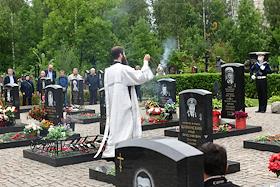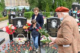 Церемония памяти по погибшим двадцать лет назад морякам атомной подводной лодки "Курск" на Серафимовском кладбище.