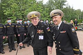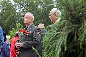 Церемония памяти по погибшим двадцать лет назад морякам атомной подводной лодки "Курск" на Серафимовском кладбище. Отставной полковник ГРУ Владимир Квачков (слева) во время церемонии.