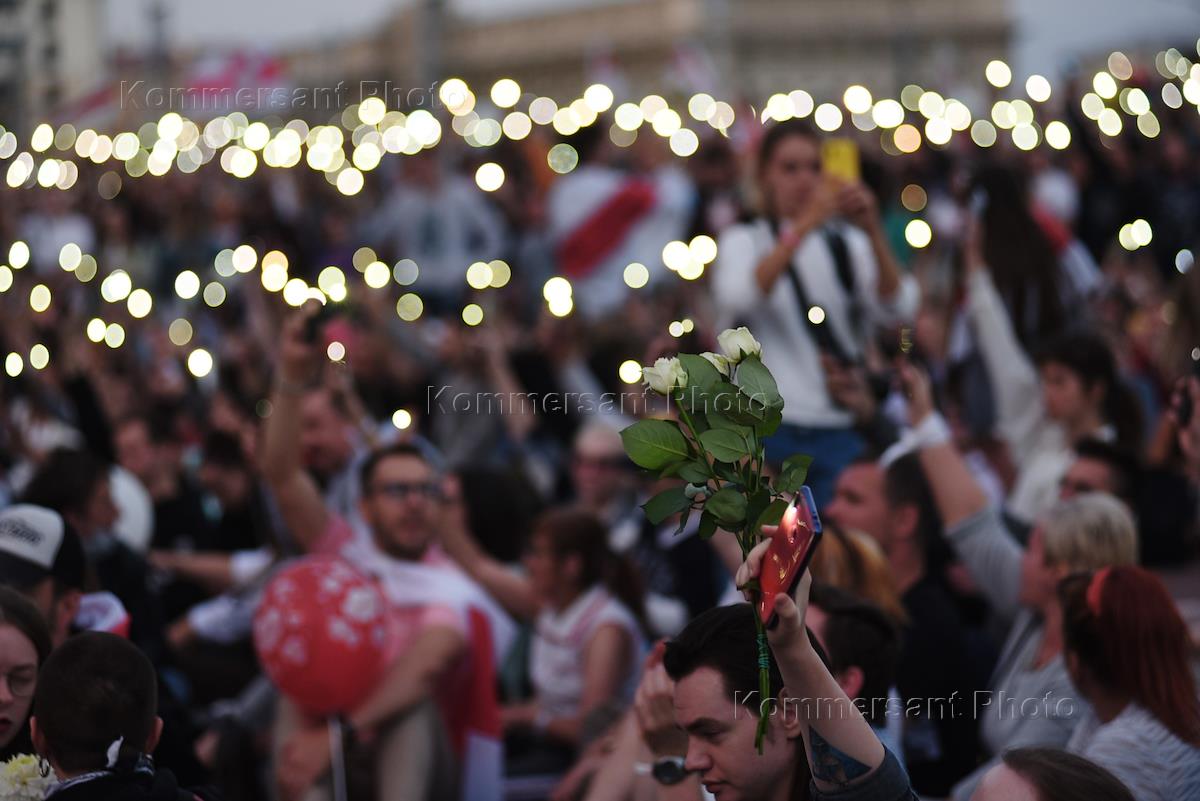 Протестные акции в Минске. Протестующие во время протестных акций на проспекте Независимости, где расположен Дом правительства Белоруссии и здание ЦИК.