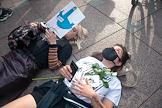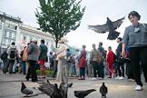 Акция солидарности с протестующими в Хабаровске, Куштау и Белоруссии "Кормим голубей" прошла на Невском проспекте возле Гостиного двора. Участники во время акции.