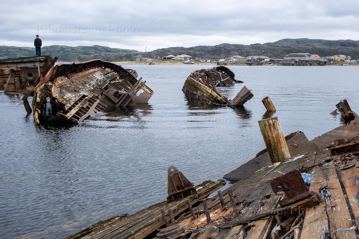 Виды села Териберка. Жанровая фотография. Кладбище деревянных кораблей. Рыболовецкий причал.