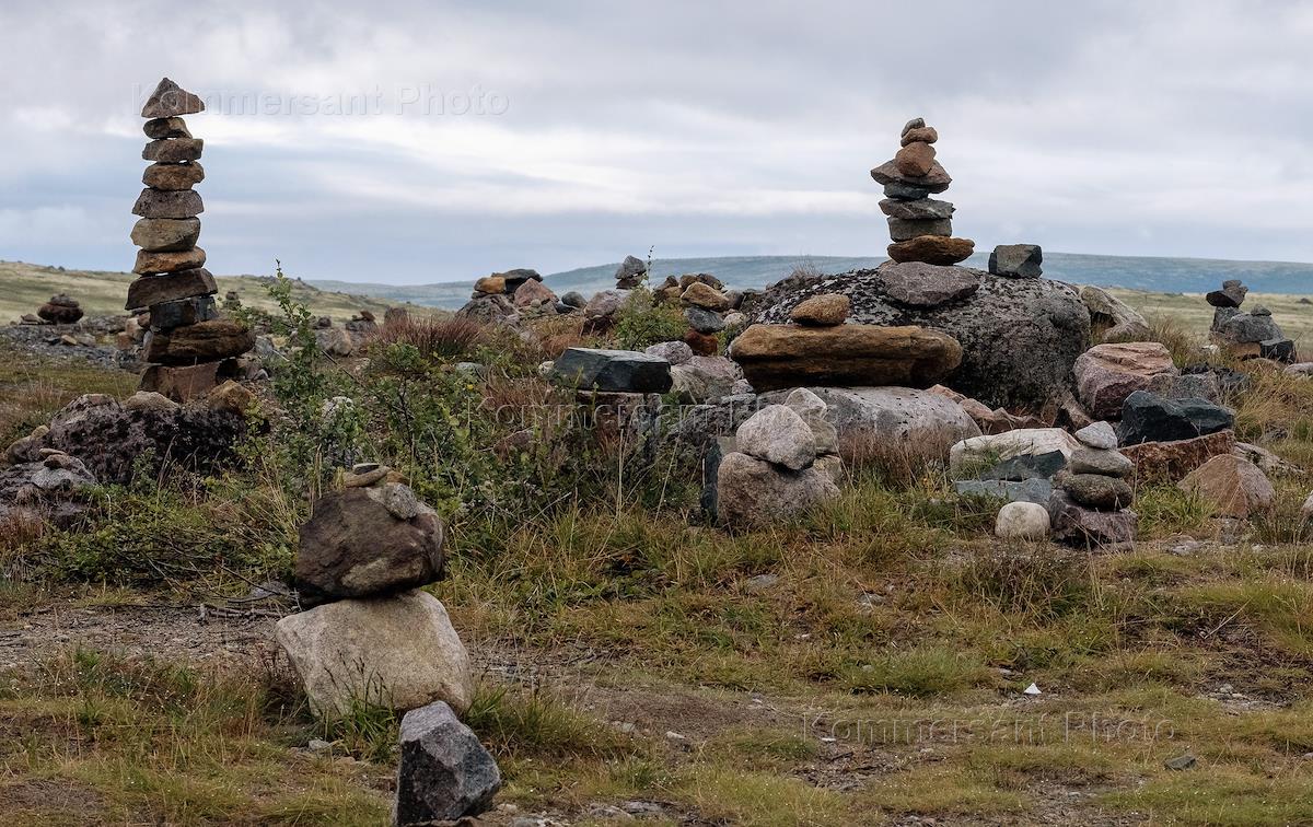 Views of vicinity of Teriberka village. Genre photo. Northern vegetation.