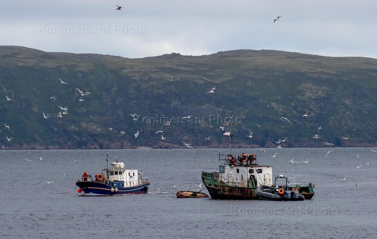 Виды села Териберка. Жанровая фотография. Рыболовецкие суда в устье реки Териберки.