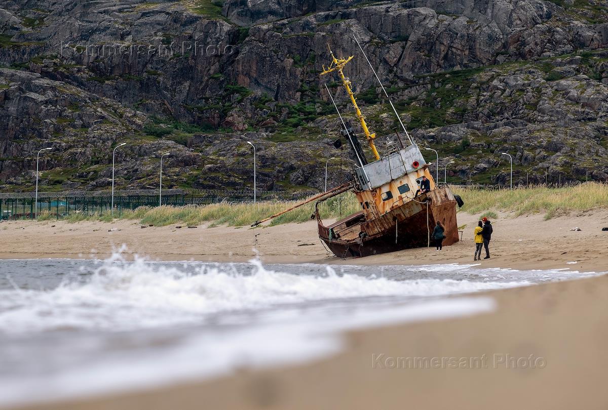 Виды села Териберка. Жанровая фотография. Заброшенное рыболовецкое судно на берегу реки Териберки.