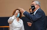 Презентация произведений австрийского художника Германа Нитча "MZM_025_09", "13_14", "07_17", переданных в фонд Третьяковской галереи, прошла в Новой Третьяковке на Крымском Валу. Посол Австрии в России Йоханнес Айгнер (слева) и директор Государственной Третьяковской галереи Зельфира Трегулова (справа) во время презентации.