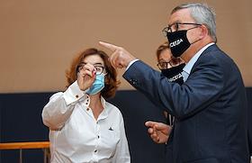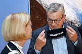 Презентация произведений австрийского художника Германа Нитча "MZM_025_09", "13_14", "07_17", переданных в фонд Третьяковской галереи, прошла в Новой Третьяковке на Крымском Валу. Посол Австрии в России Йоханнес Айгнер (справа) и директор Государственной Третьяковской галереи Зельфира Трегулова (слева) во время презентации.