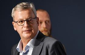 Презентация произведений австрийского художника Германа Нитча "MZM_025_09", "13_14", "07_17", переданных в фонд Третьяковской галереи, прошла в Новой Третьяковке на Крымском Валу. Посол Австрии в России Йоханнес Айгнер во время презентации.