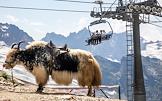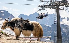 Виды Домбая. Жанровая фотография. Туристы на канатной дороге. Як.