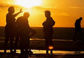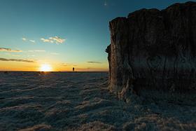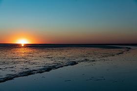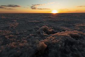 Виды соленого озера Эльтон. Закат над озером. Отдыхающие в лечебной грязи на озере.