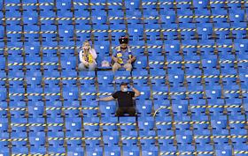 Russian Premier League (RPL). Russian Football Championship 2020/2021. Match between Rostov (Rostov) and Zenit (St. Petersburg) at the Rostov Arena stadium. Fans sit in the stands before the match.