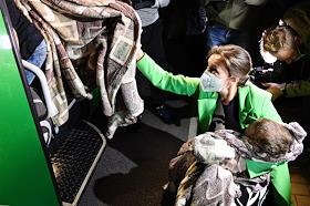 Первый вывозной рейс Министерства обороны России после перерыва, связанного с пандемией COVID-19. Уполномоченный при президенте России по правам ребенка Анна Кузнецова (слева) во время встречи российских детей из Сирии, находившихся в приютах Дамаска, на аэродроме Чкаловский.