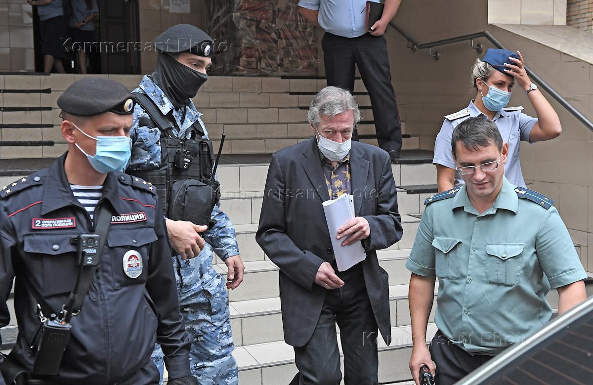 Рассмотрение по существу уголовного дела в отношении актера Михаила Ефремова о ДТП со смертельным исходом с участием актера в Пресненском районном суде. Вечером 8 июня на Садовом кольце Ефремов за рулем Jeep Grand Cherokee выехал на встречную полосу и столкнулся с автомобилем Lada, водитель которого впоследствии умер в больнице. Заседание суда было прервано и объявлена эвакуация из-за сработавшей пожарной тревоги. Актер Михаил Ефремов у здания суда.