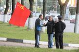5-я акция протеста против реконструкции городского парка отдыха "Швейцария". Митингующий с красным флагом СССР.