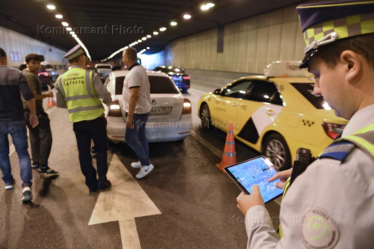 Работа аварийных комиссаров Центра организации дорожного движения (ЦОДД). Жанровая фотография. Сотрудники "Дорожного патруля" во время движения в тоннеле.