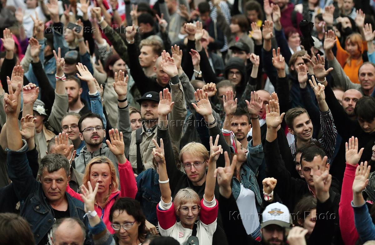 Политическая ситуация в Минске. Участники акции протеста против официальных результатов президентских выборов в Белоруссии на площади Независимости.