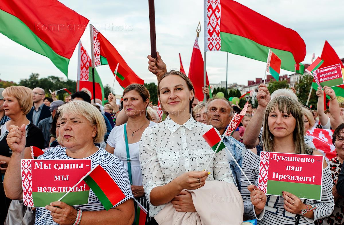 Митинг в поддержку президента Белоруссии Александра Лукашенко прошёл на площади Ленина. Участники во время митинга.