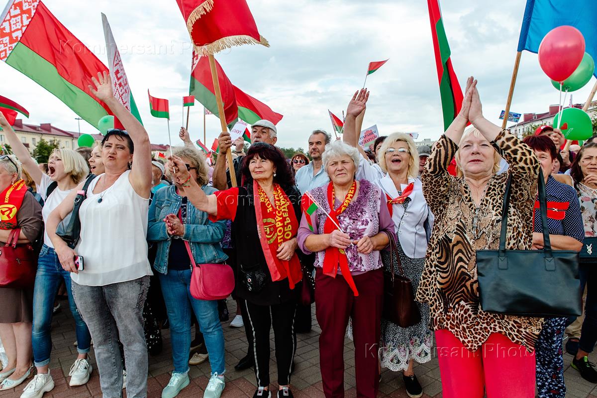 Rally in support of President of Belarus Alexander Lukashenko was held on Lenin Square. Participants gather during the rally.