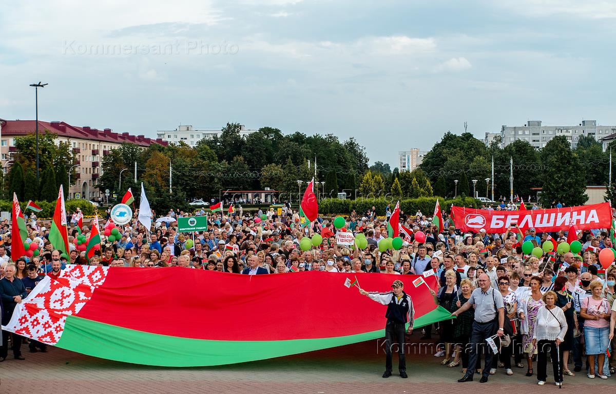 Rally in support of President of Belarus Alexander Lukashenko was held on Lenin Square. Participants gather during the rally.