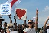 Акции протеста в Белоруссии против официальных результатов президенских выборов 9 августа. Рабочие предприятия по производству азотных соединений и удобрений "Гродно Азот" во время забастовки.