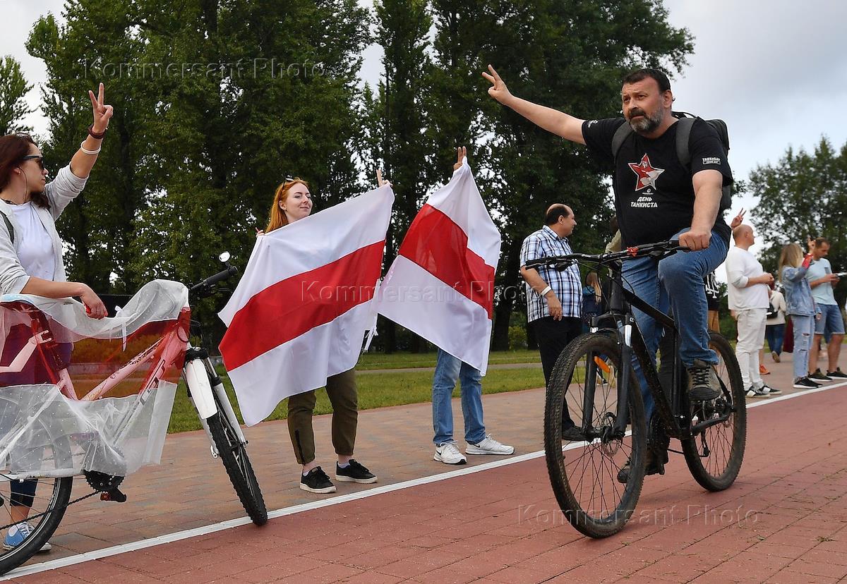 Политическая ситуация в Минске. Участники акции сторонников оппозиции "Цепь покаяния".