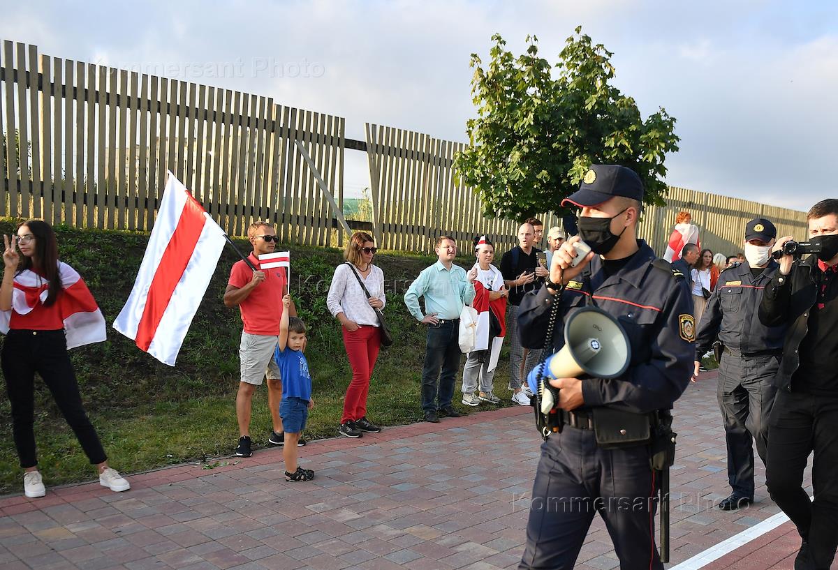 The political situation in Minsk. Participants of the Chain of Repentance opposition supporters rally. Belorussian policeman are seen during the rally.