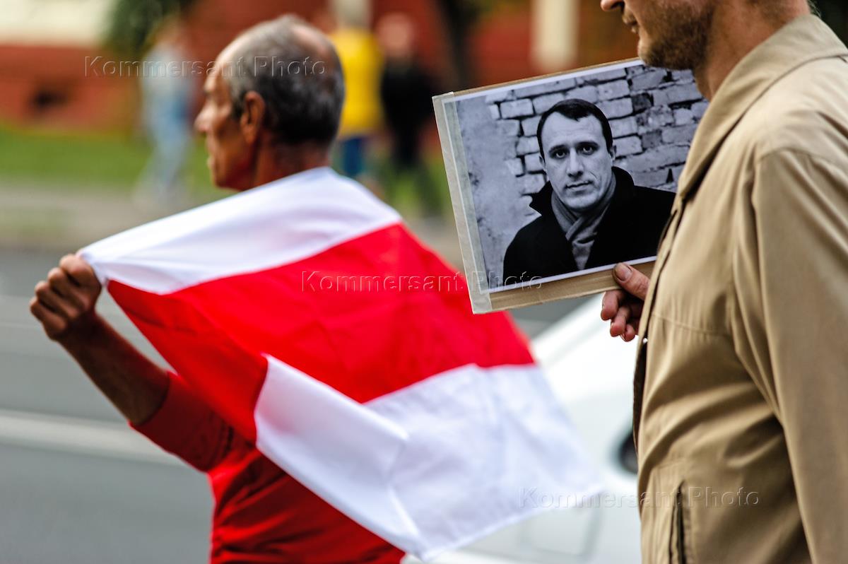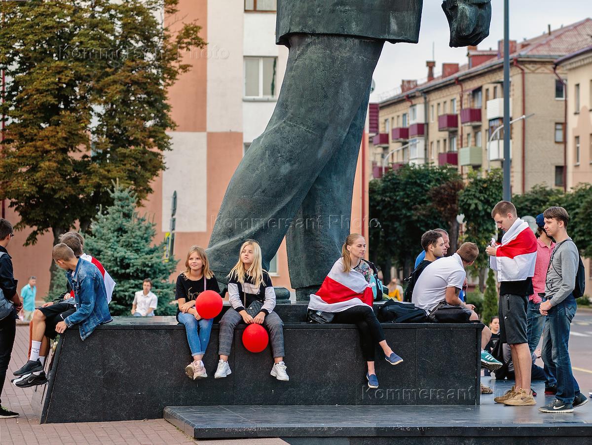Ситуация в Белоруссии. Акция протеста против официальных результатов президентских выборов в Белоруссии. Участники акции возле памятника Ленину.