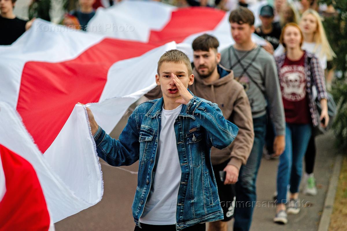 Ситуация в Белоруссии. Акция протеста против официальных результатов президентских выборов в Белоруссии. Участники акции во время марша оппозиции.