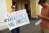 Пикеты у Гостиного двора в поддержку протестующих больше месяца хабаровчан и защитников башкирского шихана, а также против насилия силовиков в Белоруссии и за расследование истории с отравлением оппозиционного политика Алексея Навального.